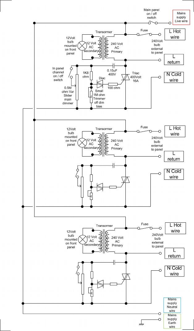 It was a 6 channel unit, with on / off switches on each channel, but if I remember even on the individual off state there was a small biasing voltage on the lights to keep them warm and to stop cold switch on so prolong the life of the spot bulbs.